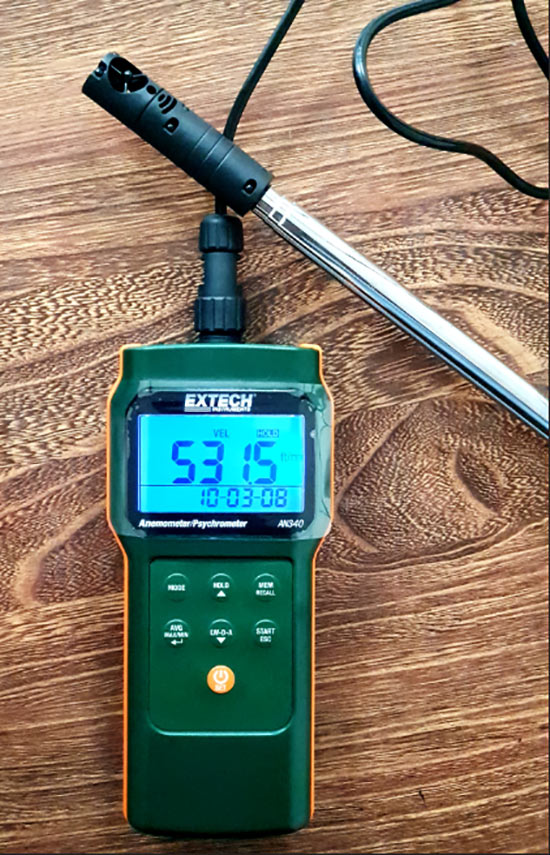 The Extech AN340 Anemomete/Psychrometer is provided with a telescoping probe with an 18mm diameter vane sensor that easily fits into air vents and can extend length of probe to 3.3ft (1m) long. Measures Air Velocity/Volume, Temperature, Humidity, Wet Bulb, and Dew Point. It can store up to 12,000 readings for data analysis.